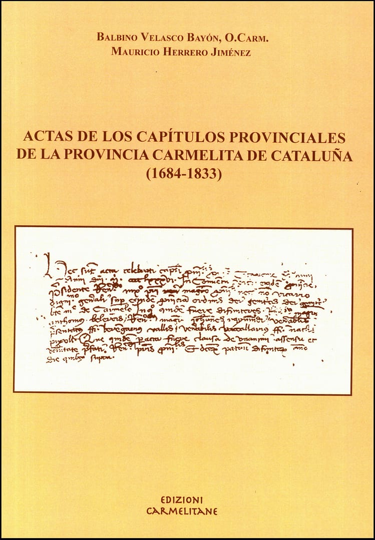 Balbino Velasco Bayón (O. Carm.) y Mauricio Herrero Jiménez, historiador de la Orden Carmelita y Profesor Titular de Paleografía de la Universidad de Valladolid, respectivamente, tienen en su haber numerosas publicaciones. Ambos son doctores en Filosofía y Letras. Junto a otros investigadores son coautores de la Colección documental de Cuéllar (934-1492), dos volúmenes de casi dos mil apretadas páginas, que está a punto ya de agotarse y que ha proporcionado una valiosa fuente de información para el conocimiento de los siglos medievales de la villa segoviana y su tierra. Vieron la luz en 2010. Con este motivo trabajaron una fecunda amistad de colaboración científica que ha cristalizado en dos volúmenes de las Actas de los Capítulos Provinciales de la Provincia Carmelita de Cataluña. Los autores se complacen en presentar a los estudiosos, en edición crítica, este interesante documento.